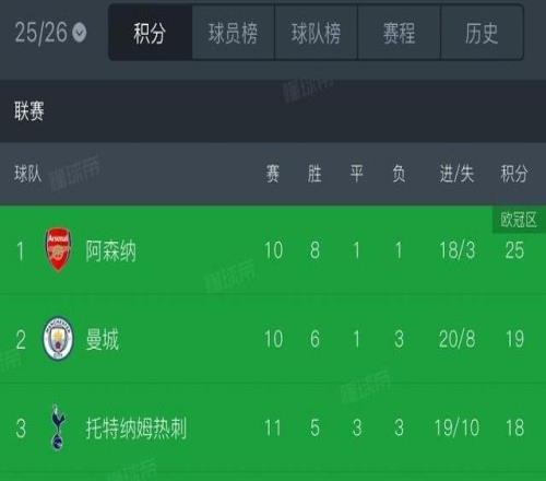 第三热刺和第七曼联同分,英超积分榜目前有5队同积18分