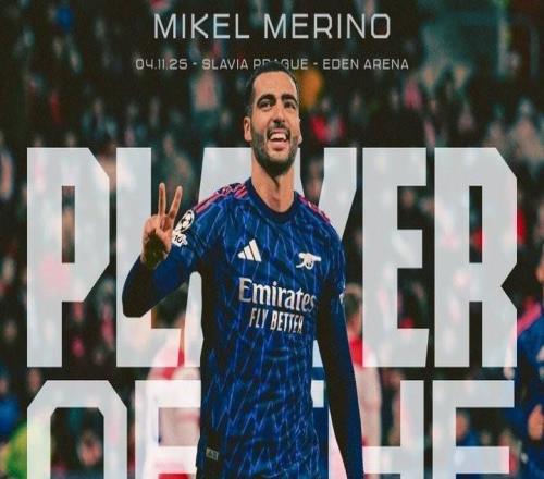 梅开二度,梅里诺当选与布拉格斯拉维亚一役枪手队内最佳球员