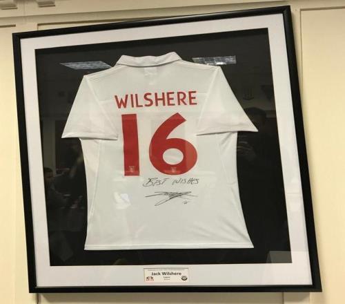 出自卢顿青训,卢顿主场挂着威尔希尔完成英格兰队首秀的球衣
