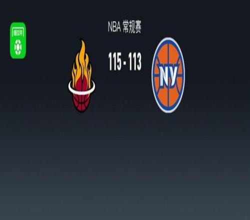 北京时间11月18日NBA 常规赛,迈阿密热火对阵纽约尼克斯。半场热火55-51尼克斯,最终热火115-113尼克斯。迈阿密热火诺曼-鲍威尔19分1板3助,达维昂-米切尔18分2板5助;纽约尼克斯麦克布莱德25分5板,米卡尔-布里奇斯23分3板4助。