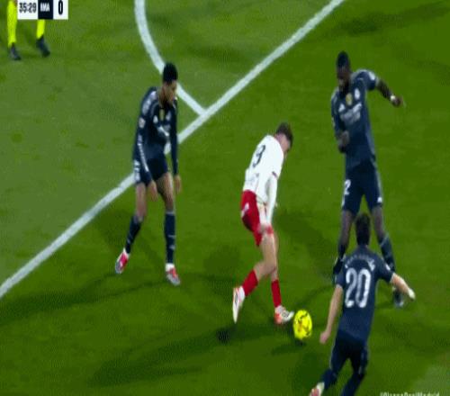 第23分钟,维尼修斯突入禁区左脚射门,皮球偏出球门