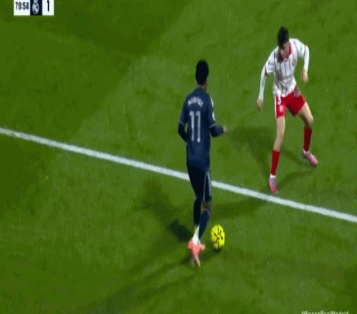 第80分钟,维尼修斯闪开角度兜射,皮球稍稍高出