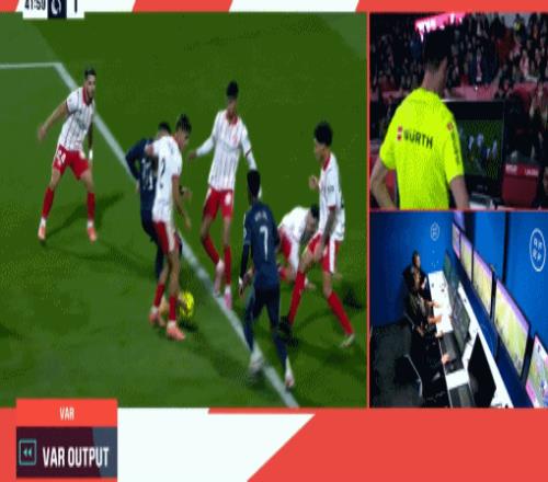第41分钟,姆巴佩捅射破门,不过手球在先被取消