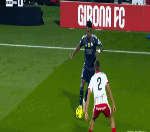第76分钟,维尼修斯倒地,赫罗纳球迷做出搞怪手势