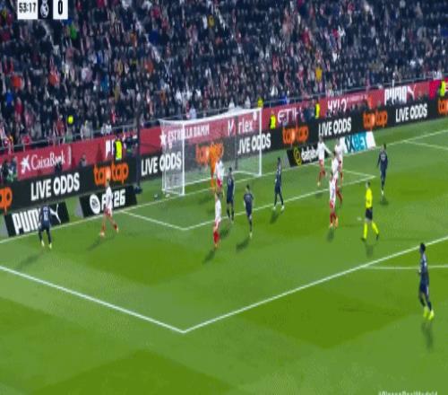 第12分钟,赫罗纳后场失误,姆巴佩小角度射门打高