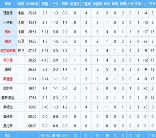 勇士数据如下: