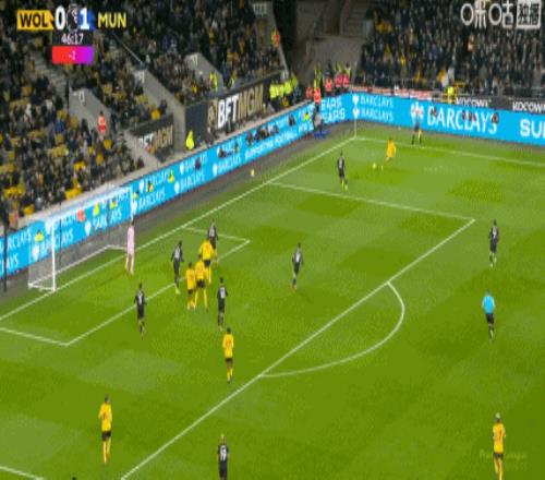 第8分钟,曼联就创造出了一次绝佳的破门机会,达洛特接到队友后场长传后,从左路快速前插获得了单刀机会,但推射角度太正,被狼队门将扑出了底线。